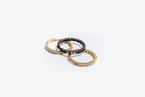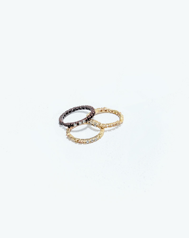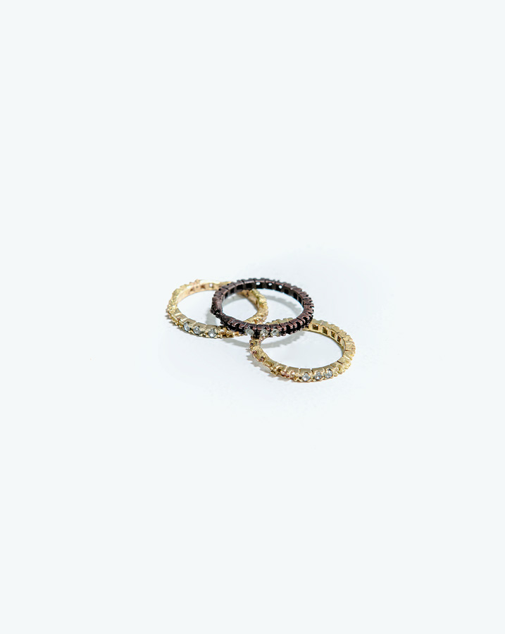 Brass ring with embedded green olivinas. Tree versions- silver, silver golden plated or oxidized.