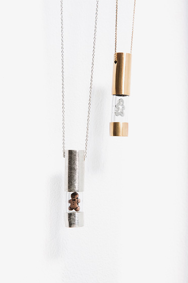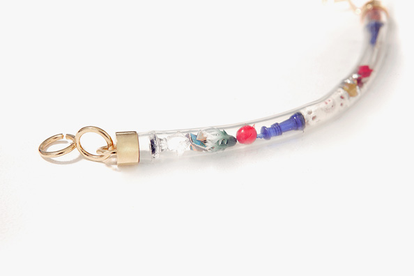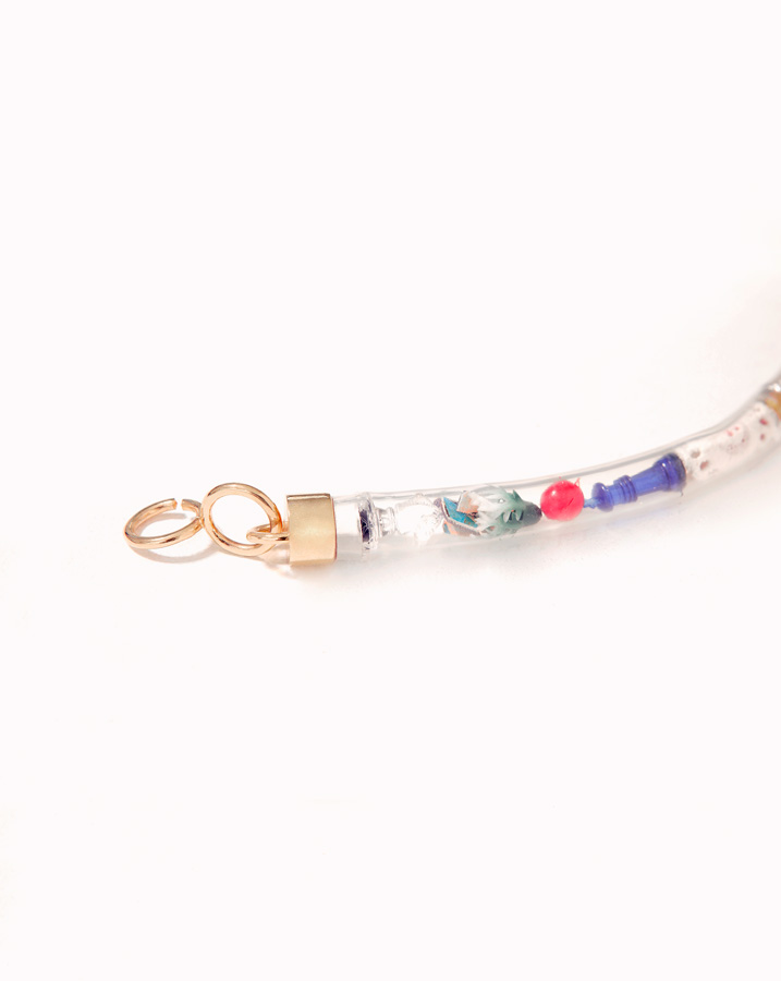 Pendant made from 1cm diameter tube with top and bottom in gold plated silver 925, on a silver 925 thread.