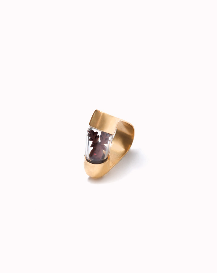 Gold plated silver925 ring. The structure that holds crystal tube. Custom size available.